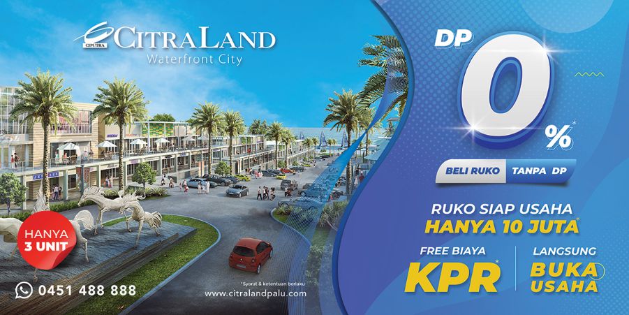 Hanya dengan 10 Juta, Anda dapat memiliki ruko 2 lantai di tengah area komersial CitraLand Palu yang sudah ramai dengan berbagai fasilitas seperti ferrish wheel, area bermain anak, area food street dan area pemukiman dari perumahan CitraLand Palu.
